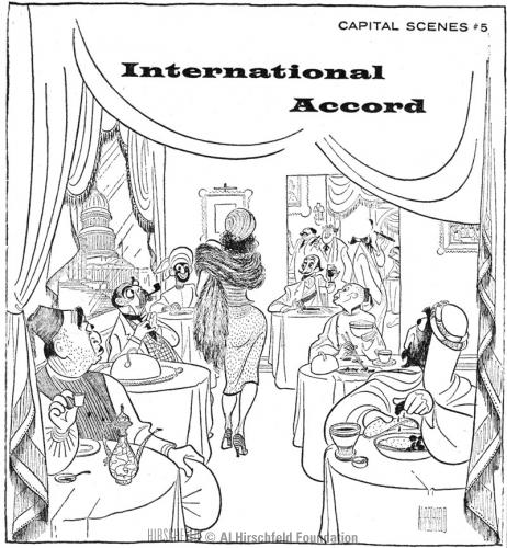 WTOP RADIO ADVERTISEMENT #5 - INTERNATIONAL ACCORD- SHOWS MEN IN RESTAURANT STARING AT WOMAN. 1957